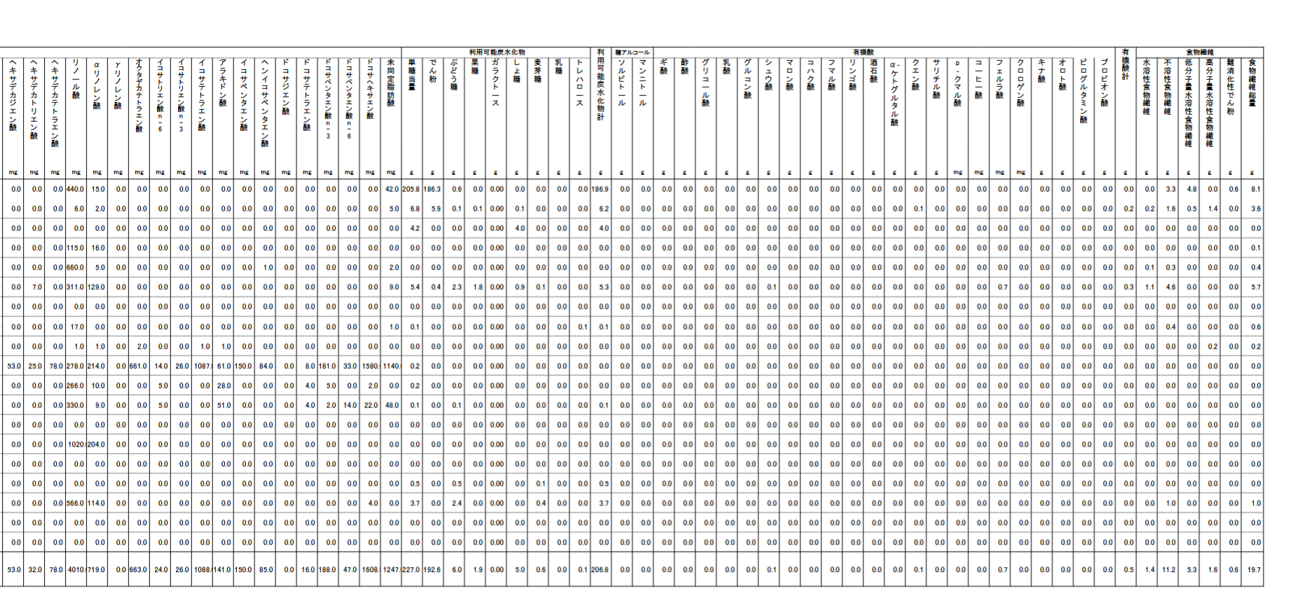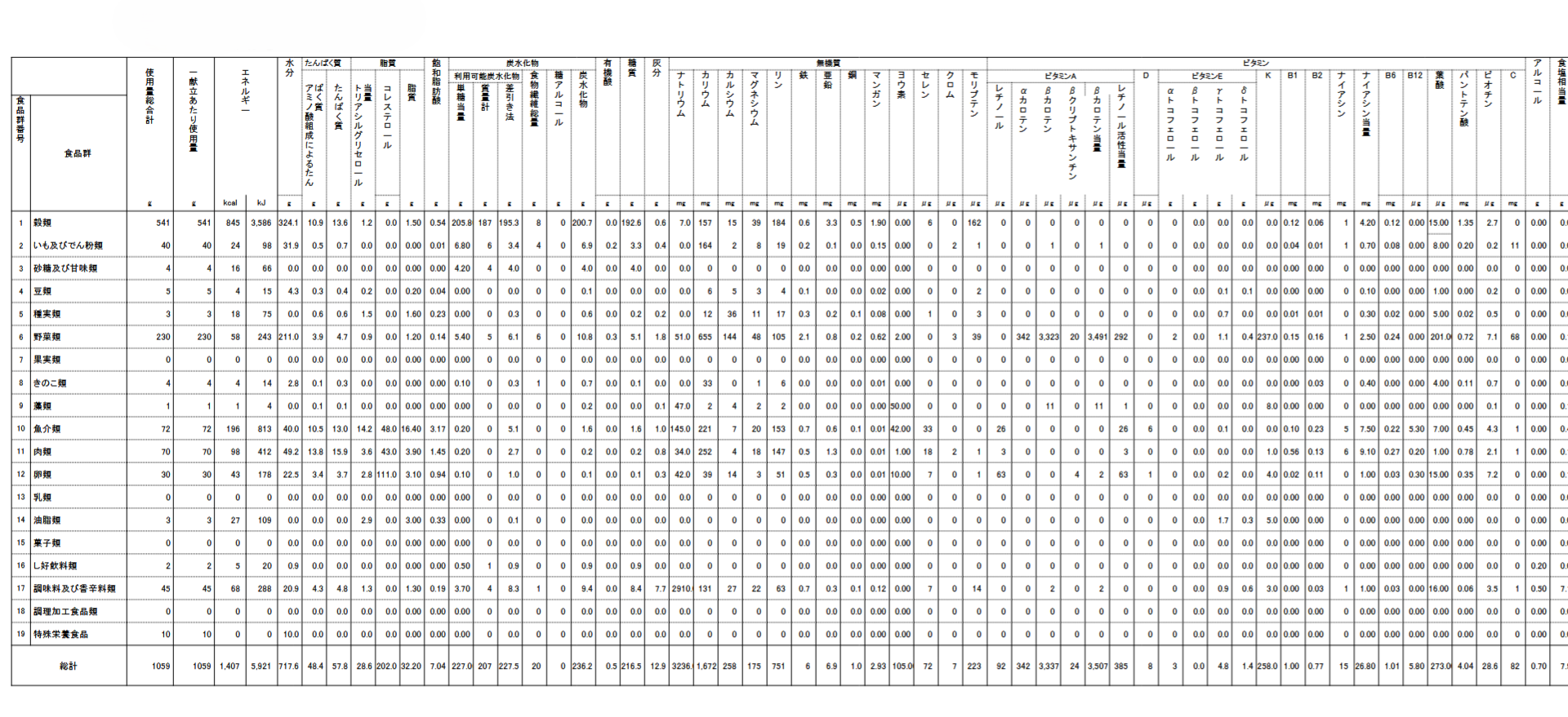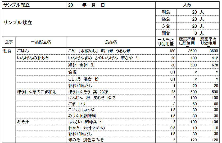 ※栄養月報のフォーマットの一部を一日のサンプル献立の栄養で表示しています。